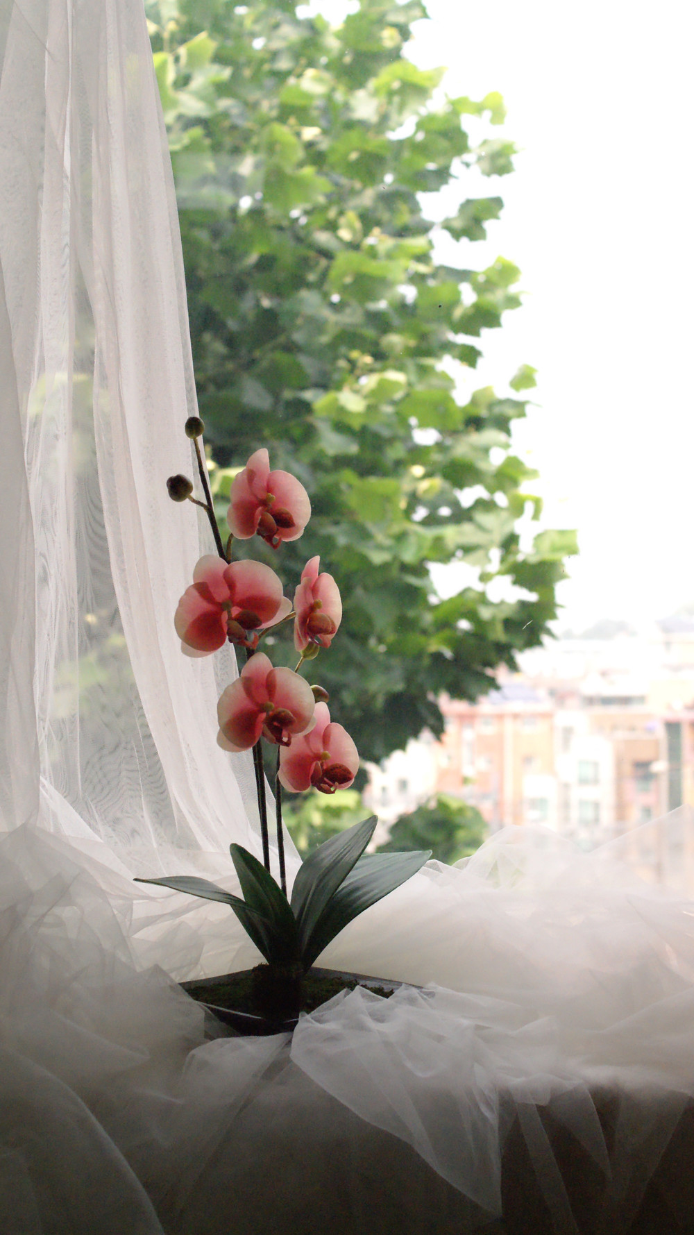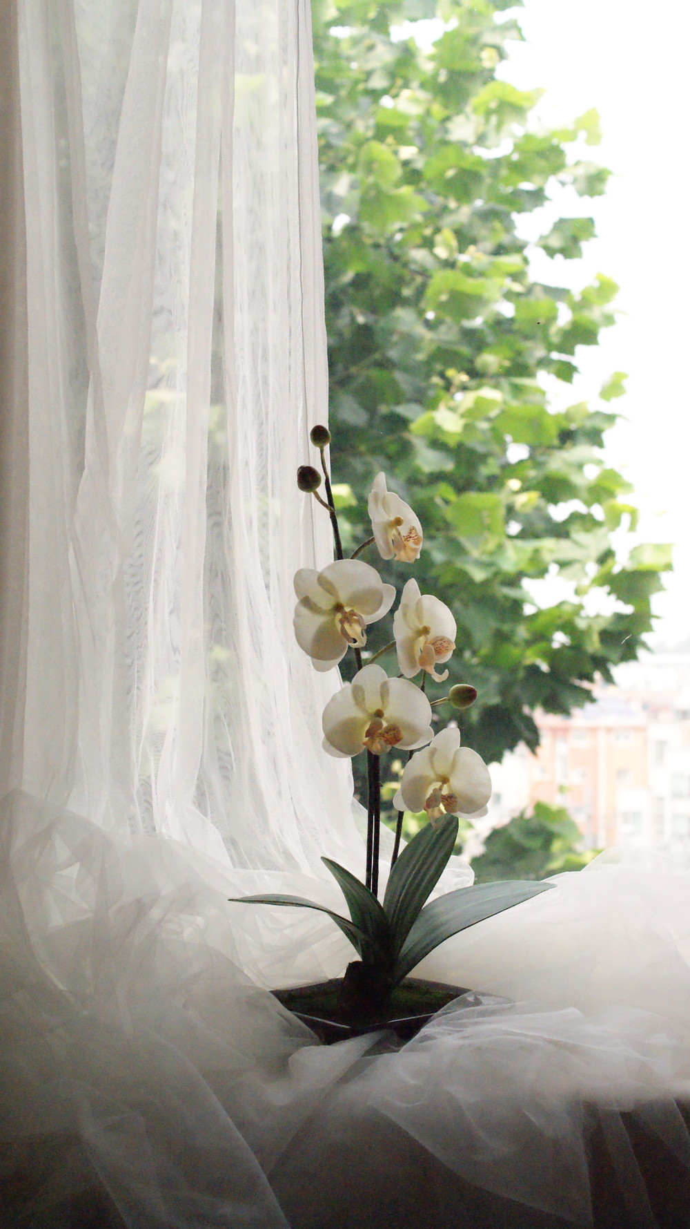 꽃대와 잎사귀를 손으로 휘어서 예쁘게 연출해주세요..