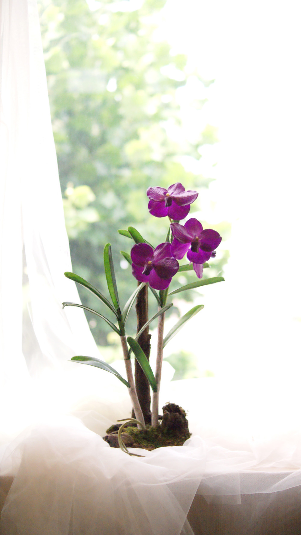 꽃대와 잎사귀를 손으로 휘어서 예쁘게 연출해주세요..