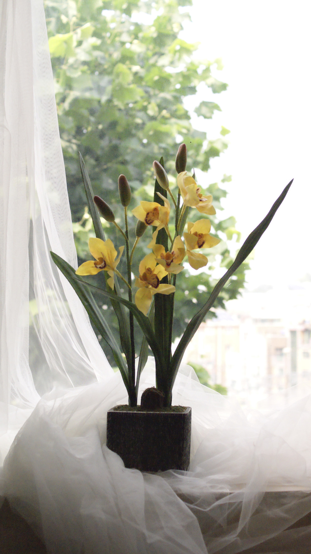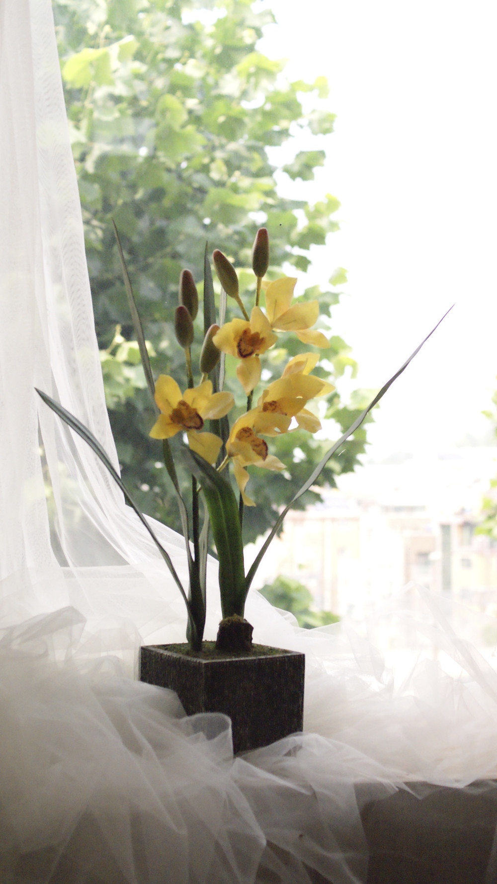 꽃대와 잎사귀를 손으로 휘어서 예쁘게 연출해주세요..