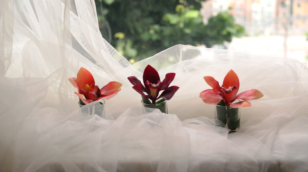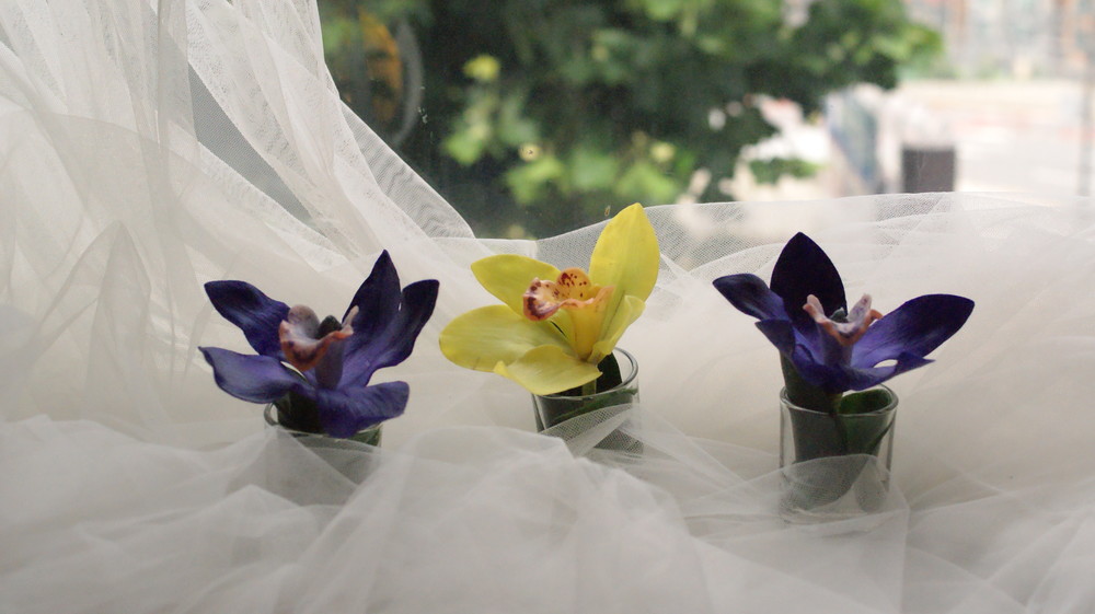 꽃대와 잎사귀를 손으로 휘어서 예쁘게 연출해주세요..