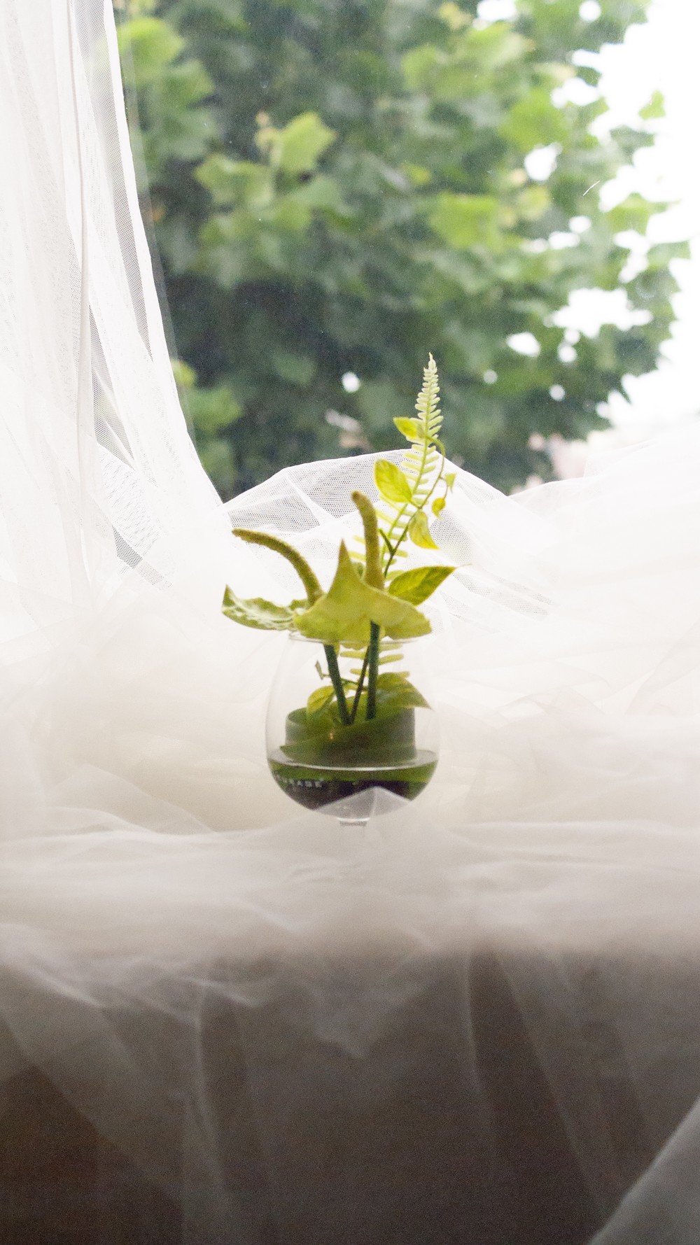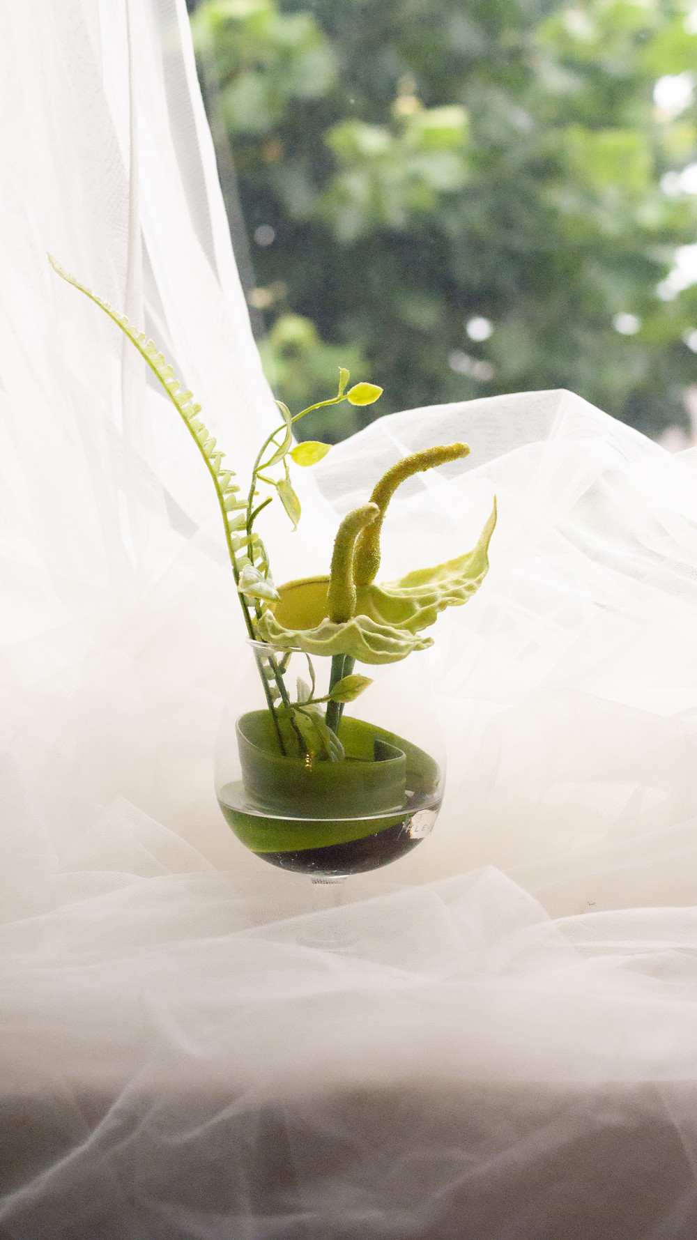 꽃대와 잎사귀를 손으로 휘어서 예쁘게 연출해주세요..