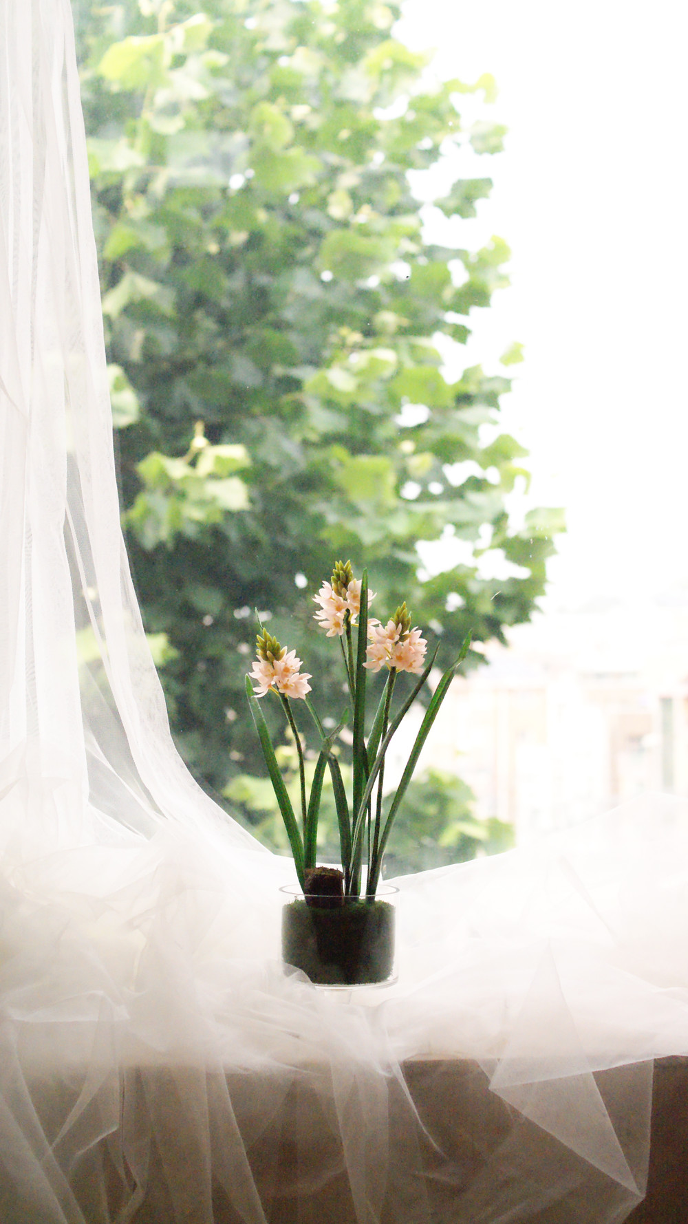 꽃대와 잎사귀를 손으로 휘어서 예쁘게 연출해주세요..